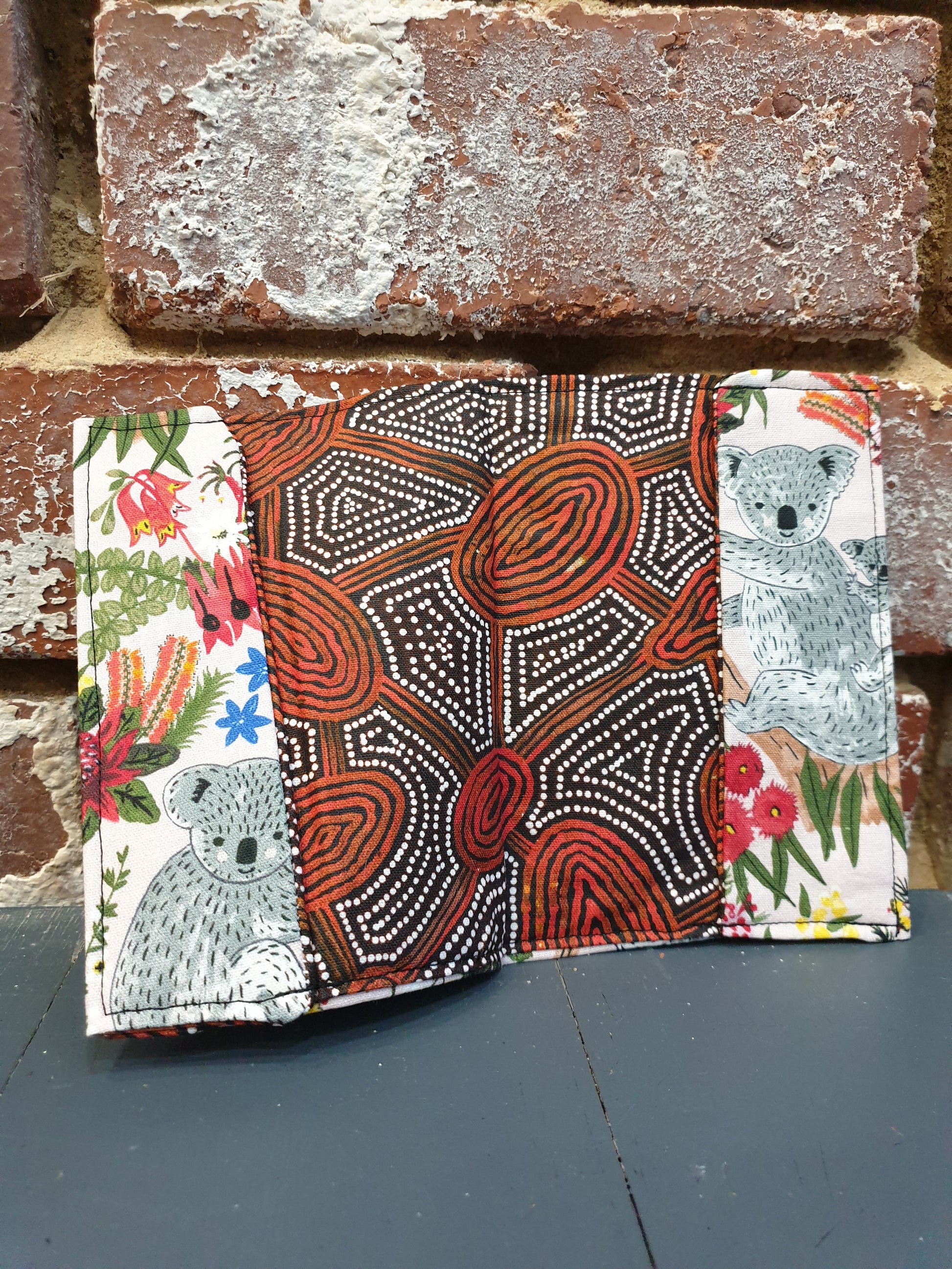 I made a second passport cover for a friend Susan - her passport had the same indigenous fabric inside, and the outside was tui (a NZ native-bird) sitting in a flowering harakeke. In Maori culture, the tui is associated with life fulfillment, confidence, and spiritual harmony. We wish all these things for her as she goes home to Aotearoa after living in Australia for many years.